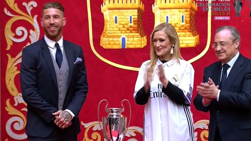Πρώτος σταθμός ήταν στην Περιφέρεια της Μαδρίτης, όπου την αποστολή υποδέχθηκε η πρόεδρος Κριστίνα Σιφουέντες η οποία πήρε ως αναμνηστικό τη φανέλα με το «7» και το όνομά της στην πλάτη. Ο μεγάλος πρωταγωνιστής του θριάμβου, Κριστιάνο Ρονάλντο, εμφανίστηκε με νέο look και για πρώτη φορά με τόσο κοντό κούρεμα! Βγήκε πρώτος από το πούλμαν, ακριβώς μπροστά από τον Ζινεντίν Ζιντάν, για το τελετουργικό που περιλάμβανε τις ομιλίες της Σιφουέντες και του προέδρου της Ρεάλ, Φλορεντίνο Πέρεθ.ΠΗΓΗ: Filathlos.gr