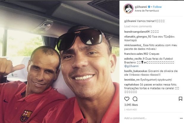 Οι συνομήλικοι βετεράνοι (45ρηδες και οι δυο), χαρούμενοι για την επανένωσή τους, έβγαλαν χαμογελαστοί φωτογραφία στο πούλμαν, φορώντας μπλούζα της καταλανικής ομάδας, καθ’ οδόν για τη προπόνηση, με τον Τζιοβάνι να ποστάρει την φωτογραφία στον λογαριασμό του στο Instagram.