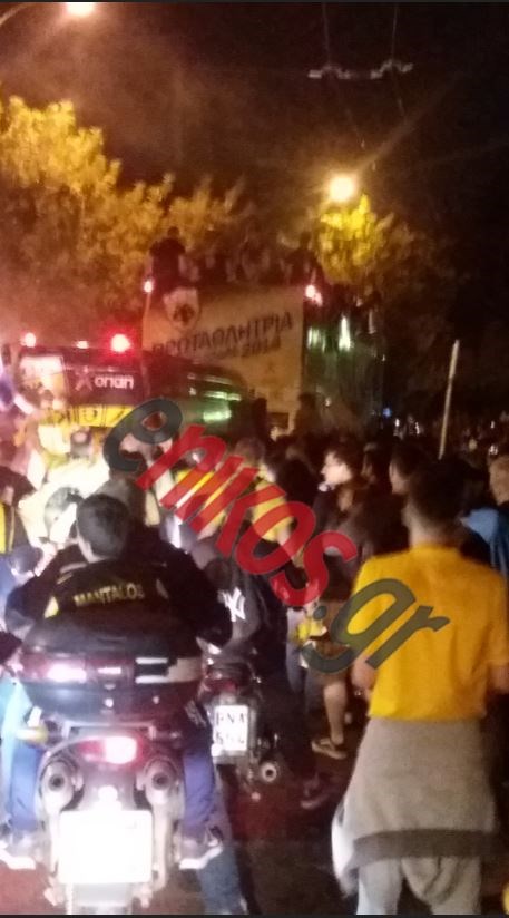 Τρελό πάρτι έστησαν οι οπαδοί της ΑΕΚ στη Νέα Φιλαδέλφεια για την κατάκτηση του πρωταθλήματος από την ΑΕΚ μετά από 24 χρόνια. Ιδιαίτερα όταν έφθασε το πούλμαν με τα μέλη της ομάδας επικράτησε πανζουρλισμός. Δείτε τις φωτογραφίες που μας έστειλε ένας οπαδός της ΑΕΚ.