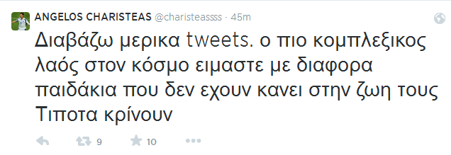 “Διαβάζω μερικά tweets. Ο πιο κομπλεξικός λαός στον κόσμο είμαστε με διάφορα παιδάκια που δεν έχουν κάνει στη ζωή τους τίποτα κρίνουν”.