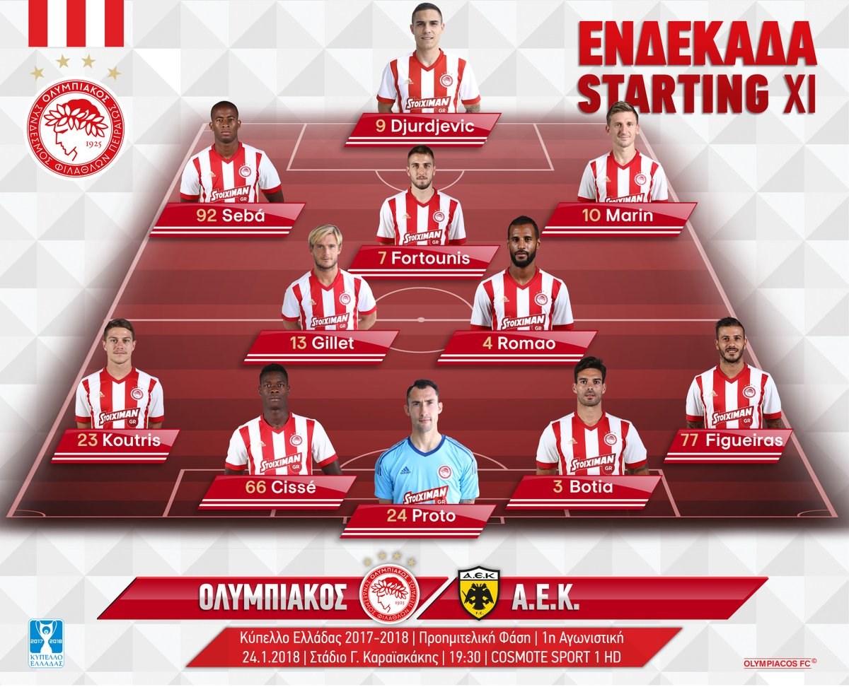 Με αρκετές αλλαγές θα παραταχθεί ο Ολυμπιακός στον πρώτο προημιτελικό του κυπέλλου κόντρα στην ΑΕΚ. Ο Όσκαρ Γκαρθία άφησε εκτός ενδεκάδας τους Μιραλάς, Ανσαριφάρντ, Πάρντο, Ταχτσίδη και Ένγκελς σε σχέση με το προηγούμενο ματς με την Ξάνθη.