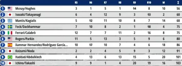 Οι ΜακΝέι και Χιούζ παρά την πέμπτη τους θέση διατήρησαν το χρυσό μετάλλιο, ενώ το ελληνικό πλήρωμα έπεσε στην τρίτη θέση αφού στην κούρσα των μεταλλίων τερμάτισε έβδομο.
