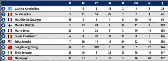 Εκεί με την πρώτη της θέση η Καραχάλιου κατάφερε να διατηρηθεί μπροστά και με 28 βαθμούς ποινής να διατηρηθεί στην κορυφή. Δεύτερη ήταν η Βελγίδα που συγκέντρωσε 46 βαθμούς ποινής και τρίτης η Γαλλίδα, Κέρανγκα με 69 βαθμούς.