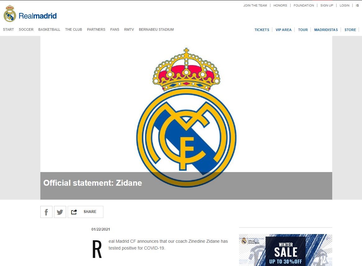 Με μια σύντομη ανακοίνωσή της η Ρεάλ Μαδρίτης ανακοίνωσε πως ο Ζινεντίν Ζιντάν της βγήκε θετικός στον κορονοϊό. Σύμφωνα με το Football Espana, η είδηση επιβεβαιώθηκε την Παρασκευή το πρωί κάτι που σημαίνει ότι ο θρυλικός ποδοσφαιριστής και νυν προπονητής της “βασίλισσας” πρέπει να μπει αμέσως σε καραντίνα και έτσι θα είναι απών από το παιχνίδι εναντίον της Αλαβές αυτό το σαββατοκύριακο.