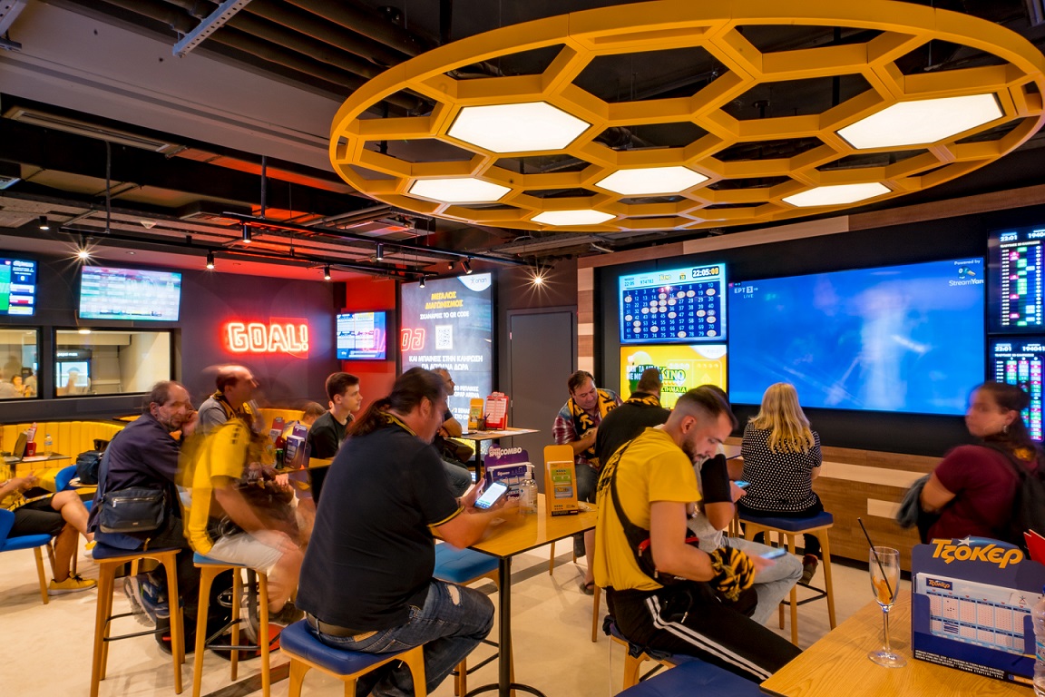 Οι 45 μεγάλες οθόνες, τα LED πάνελ πάνω από τον πάγκο εξυπηρέτησης του καταστήματος και ο κρυστάλλινος ήχος μεταδόσεων απογειώνουν την ποδοσφαιρική εμπειρία. Παράλληλα, 110 θέσεις με αναπαυτικούς καναπέδες και καθίσματα, δίνουν την αίσθηση πως παρακολουθείς τον αγώνα από τις εξέδρες του γηπέδου.