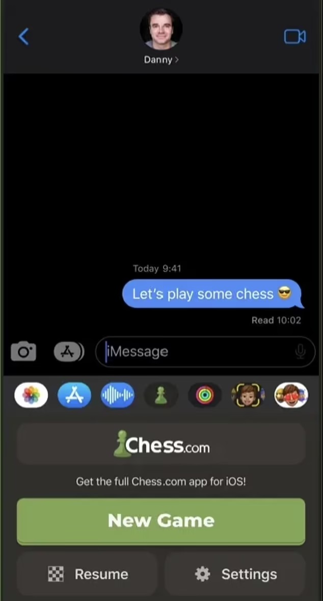 Ένα από τα παιχνίδια που μπορείτε να παίξετε μέσα στο iMessage είναι το Σκάκι (από το Chess.com). Στη συνέχεια, μπορείτε να το επιλέξετε από τη λίστα εφαρμογών για να παίξετε μέσα σε μια συνομιλία.