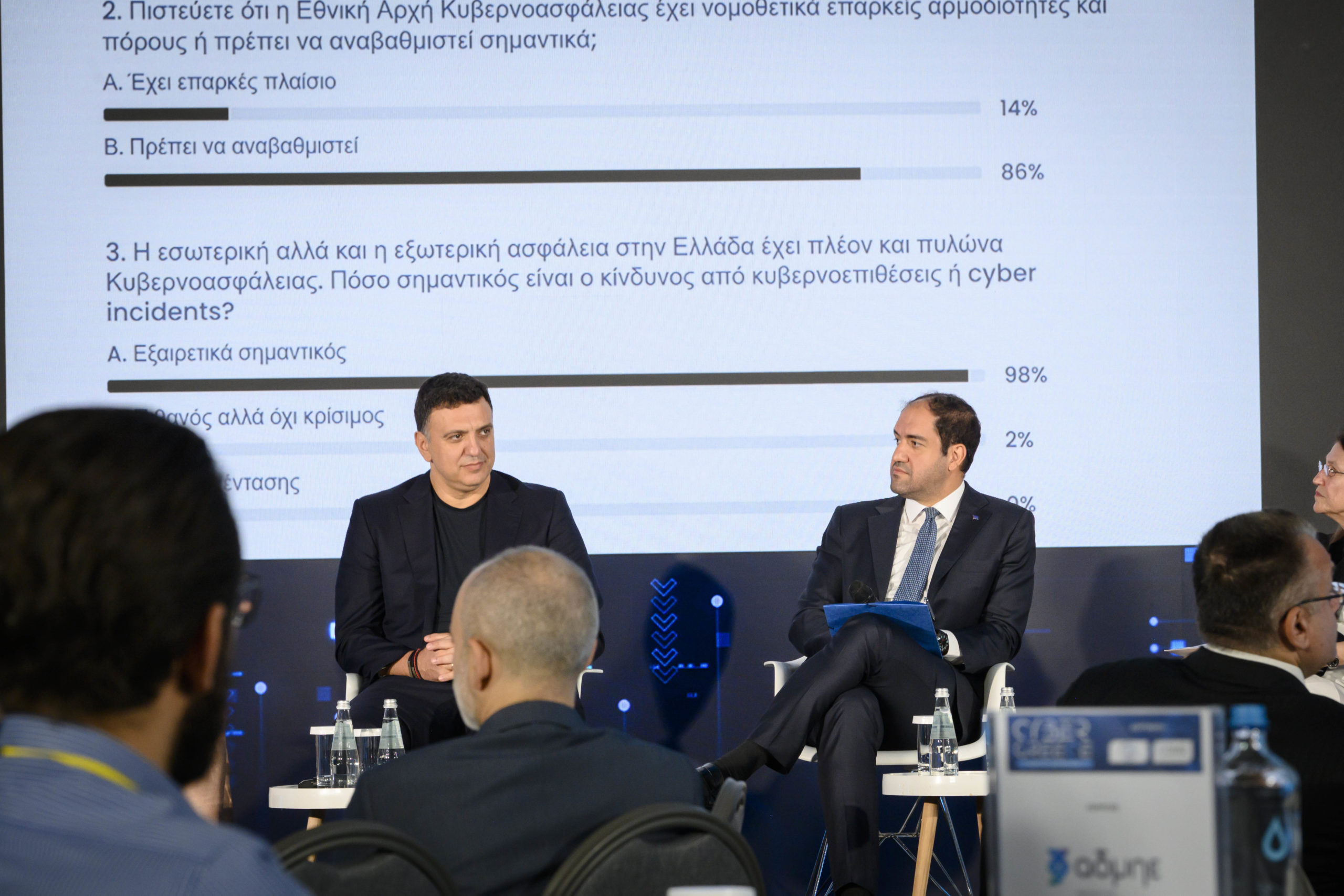 Ο Υφυπουργός Εθνικής Άμυνας κ. Γιάννης Κεφαλογιάννης συμμετείχε σήμερα, Δευτέρα 21 Οκτωβρίου 2024, στη συζήτηση με θέμα «Κυβερνοάμυνα & Ανθεκτικότητα του Κράτους», την οποία συντόνισε η Μαριάννα Πυργιώτη, Co-founder Dome Consulting Firm & Communication Expert, στο πλαίσιο του Συνεδρίου «Cyber Greece 2024».