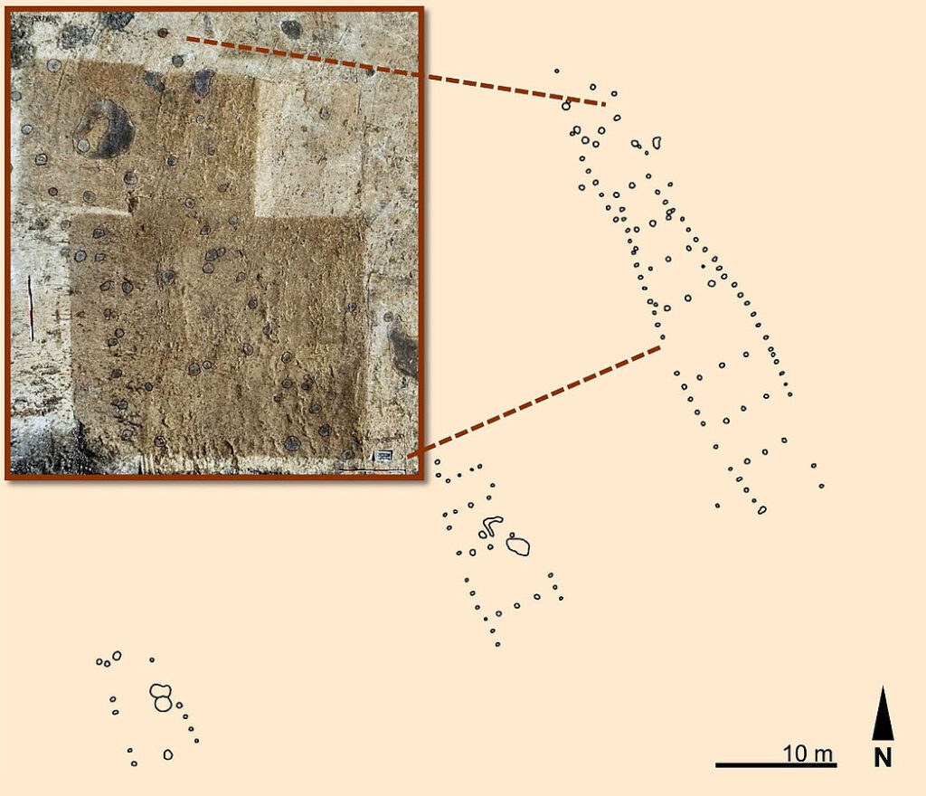 Μπορεί οι ξύλινες κατασκευές να έχουν σαπίσει εδώ και καιρό. Ωστόσο, οι αρχαιολόγοι έχουν αναγνωρίσει τις βαθιές τρύπες των πασσάλων όπου κάποτε στέκονταν οι τοίχοι και οι οροφές.