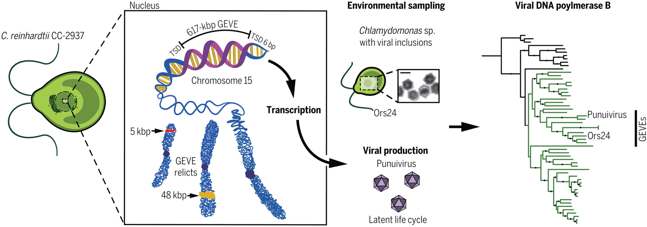 “Είναι βέβαιο ότι έχει εισαχθεί ένας ιός εδώ”, είπε η Erazo-Garcia. Είδε για πρώτη φορά τα ασυνήθιστα τμήματα του DNΑ του, όσο μελετούσε καλλιέργειες από Chlamydomonas reinhardtii, έναν βασικό οργανισμό στην έρευνα για τη φωτοσύνθεση.
