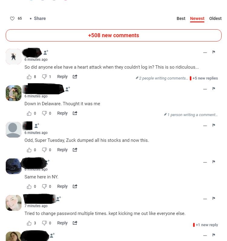 Τα προβλήματα αναφέρονται από χιλιάδες χρήστες ανά τον κόσμο. To πρακτορείο Reuters μετέδωσε στις 17:41 ότι παρατηρήθηκαν περισσότερες από 300.000 αναφορές στον κόσμο για το Facebook και 47.000 αναφορές για το Instagram.