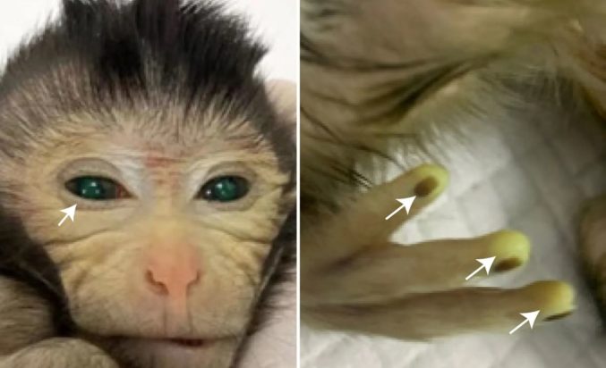 Ένας πίθηκος που γεννήθηκε στην Κίνα με φωσφορίζοντα πράσινα μάτια και τα άκρα των δαχτύλων είναι η πρώτη ζωντανή «χίμαιρα» πρωτευόντων που δημιουργήθηκε με βλαστοκύτταρα, λένε οι ερευνητές, που σημαίνει ότι το πλάσμα έχει ιστό και DNA που προέρχονται από δύο γενετικά διαφορετικά έμβρυα. Οι επιστήμονες στην Κίνα ανακοίνωσαν τη γέννηση ενός πρωτεύοντος θηλαστικού που δεν μοιάζει με κανένα άλλο.