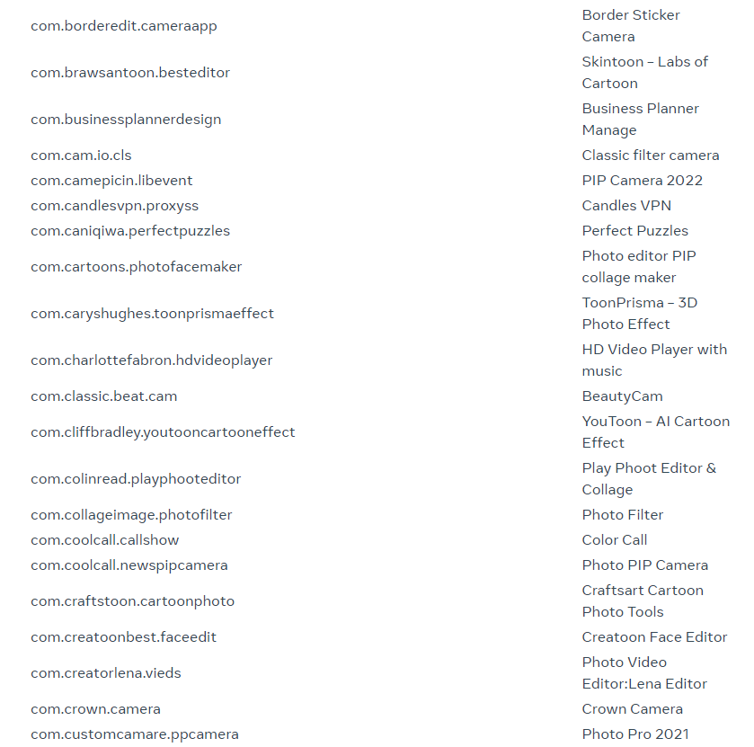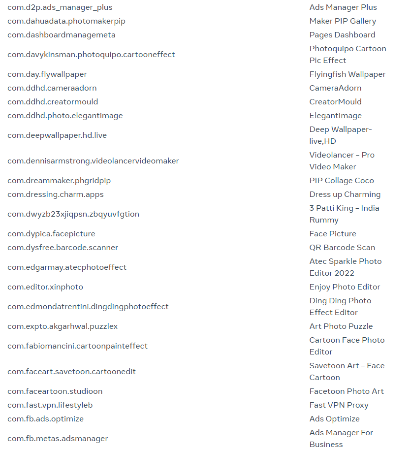 Η Meta έδωσε στη δημοσιότητα τις 400 και πλέον κακόβουλες εφαρμογές Android και iOS που εντόπισε. Μάλιστα έδωσε και συμβουλές στους χρήστες για το πως μπορούν να προστατευτούν στο μέλλον από παρόμοιες εφαρμογές.