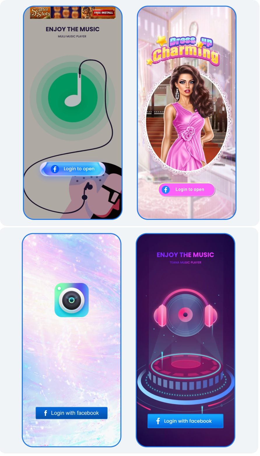 Δείτε μερικά παραδείγματα εφαρμογών κακόβουλου λογισμικού που η Meta διαπίστωσε ότι δεν παρέχουν καμία λειτουργικότητα μέχρι να συνδεθεί ο χρήστης με τον λογαριασμό του στα social media.