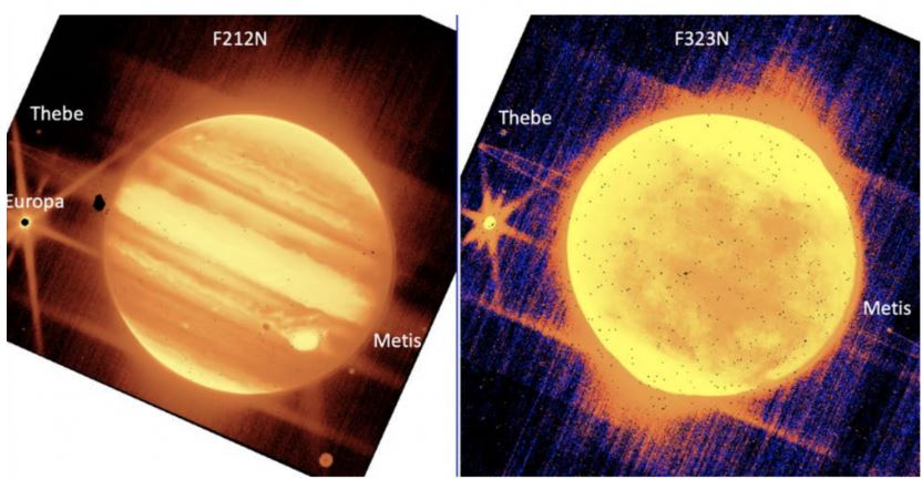 Οι δοκιμές έδειξαν ότι το τηλεσκόπιο James Webb ανταποκρίνεται και σε αυτή την δοκιμασία. Οι εικόνες είναι σε διάφορα μήκη του υπέρυθρου φωτός και δείχνουν ποια σημεία του Δία είναι πιο θερμά από άλλα.