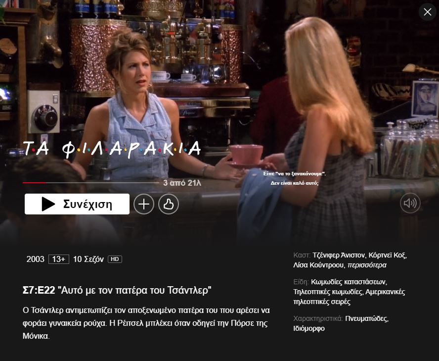 Αυτή η εξέλιξη «έλυσε» τα χέρια του Netflix, καθώς δεν υπάρχει πλέον κανένα θέμα με τα δικαιώματα διανομής της σειράς «Τα Φιλαράκια». Έτσι η αγαπημένη σειρά έγινε και πάλι διαθέσιμη στη χώρα μας.