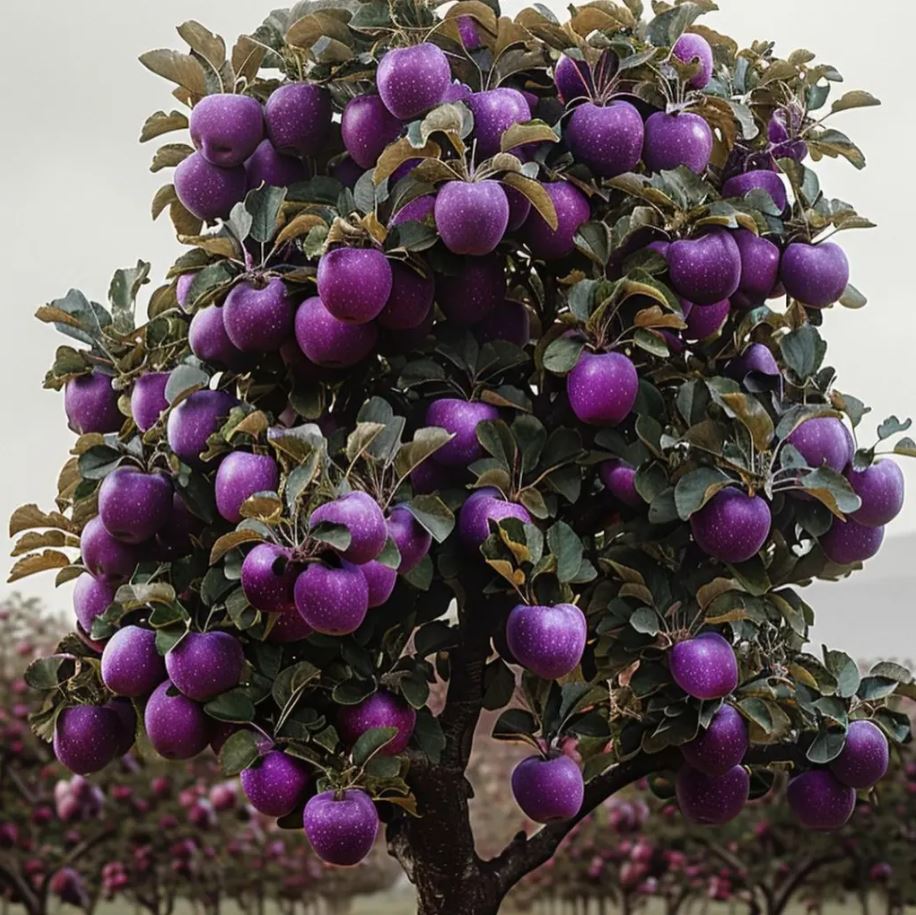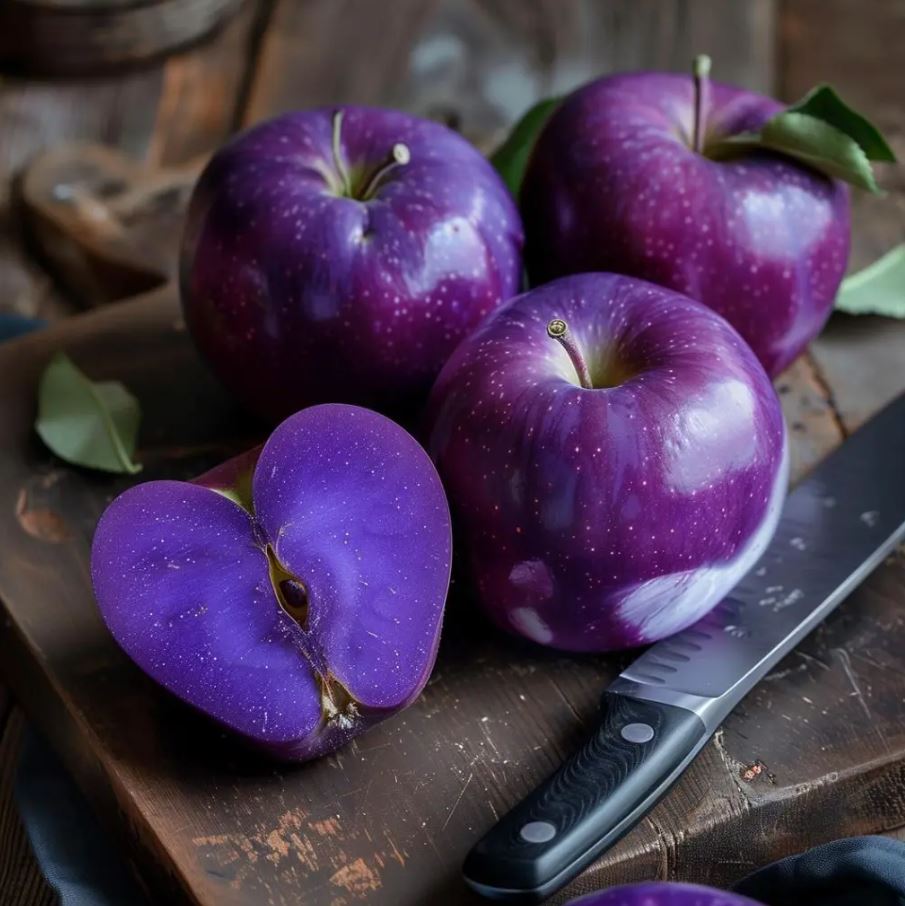 Η αρχική ανάρτηση φωτογραφίας, που ανέβηκε στο Instagram από τον χρήστη Unnaturalist AI , δείχνει πολλά μωβ μήλα να αστράφτουν σε ένα ξύλο κοπής με το ένα να έχει κοπεί στη μέση για να αποκαλύψει το βιολετί εσωτερικό του.