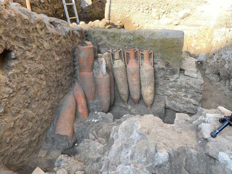 Οι αμφορείς στηριγμένοι στον τοίχο της βίλλας (Φωτό: UT Project Somma Vesuviana / University of Tokyo)