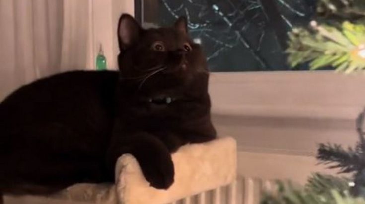 Στο σύντομο βίντεο που αναρτήθηκε στο TikTok από τον χρήστη «@Mylo_the_mouser», ο μαύρος γάτος βρίσκεται πάνω στο ονυχοδρόμιό του δίπλα στο παράθυρο και κοιτάζει το χριστουγεννιάτικο δέντρο με τα μάτια του ορθάνοιχτα. Το έκπληκτο βλέμμα στο πρόσωπό του Mousse τα λέει όλα.