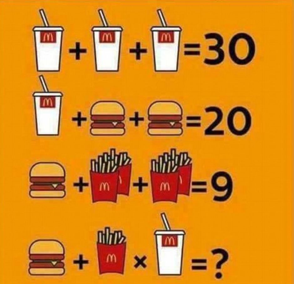 Περιλαμβάνει μόνο τρία αγαπημένα αντικείμενα από το μενού των McDonalds, αλλά αυτό το μαθηματικό παζλ έχει αφήσει τους ανθρώπους στο Facebook να ξύνουν τα κεφάλια τους.