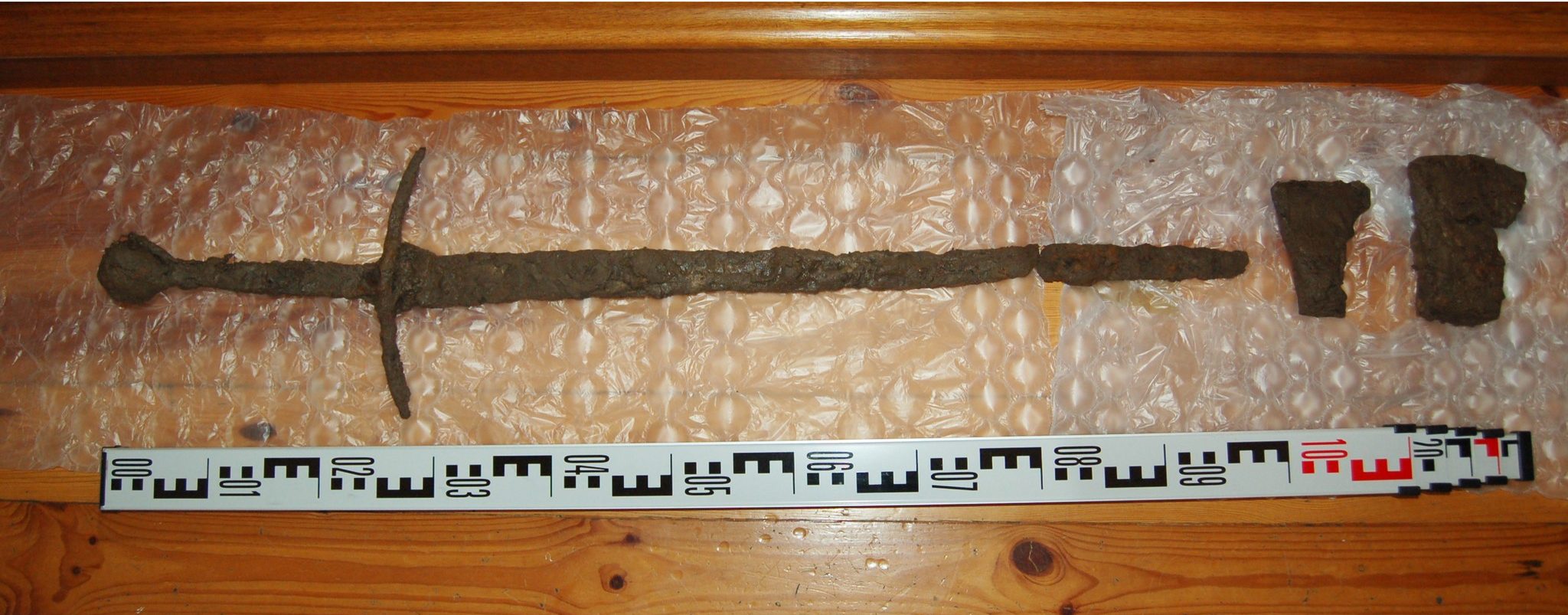 Η ανακάλυψη έγινε κοντά στο χωριό Wielka Tymawa, στο Βοεβοδάτο Warmian-Masurian της Πολωνίας. Εκεί ήλθαν στο φως ένα σπαθί με δύο λαβές και δύο κεφαλές από τσεκούρια του 14ου και του 15ου αιώνα. Η ομάδα, πραγματοποίησε την ανακάλυψη κατά τη διάρκεια μιας αδειοδοτημένης έρευνας. Πλέον, έχει παραδώσει τα αντικείμενα στο μουσείο στην Ostróda για συντήρηση και μελλοντική έκθεση.