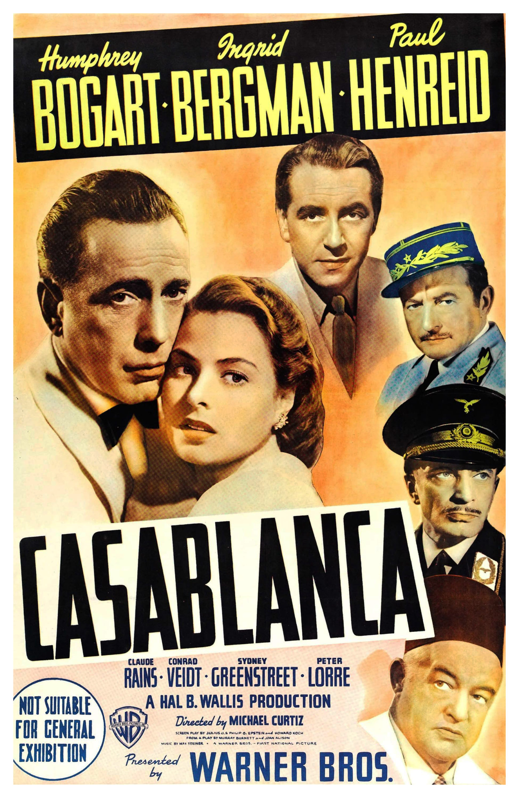 7. Casablanca (1942), ρομαντικό δράμα γυρισμένο κατά τη διάρκεια του Β’ Παγκοσμίου Πολέμου, με τους Humphrey Bogart, Ingrid Bergman και Paul Henreid. Κέρδισε το όσκαρ Καλύτερης Ταινίας.