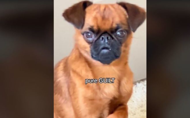 Έτσι σε βίντεο που δημοσιεύθηκε στο TikTok η ιδιοκτήτρια ενός μικρού σκύλου ονόματι Γκάρι τον πιάνει επ’ αυτοφώρω να έχει ενοχές γι’ αυτό που κρύβει στο στόμα του.