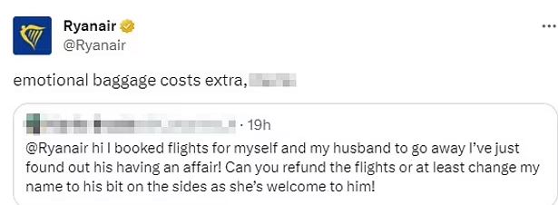 Η ιρλανδική αεροπορική εταιρεία, η οποία είναι γνωστή για τις φτηνές πτήσεις που παρέχει, φημίζεται επίσης για τις εύστοχες, σαρκαστικές και μερικές φορές αμφιλεγόμενες απαντήσεις στα μέσα κοινωνικής δικτύωσης σε άτομα που εκφράζουν παράπονα.