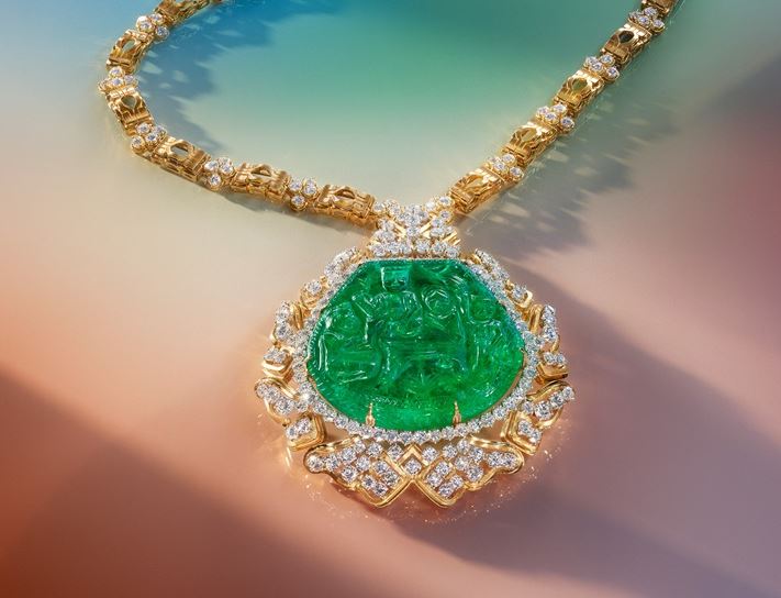 Κολιέ με κρεμαστό κόσμημα από σμαράγδι και διαμάντια Harry Winston «The Great Mughal».