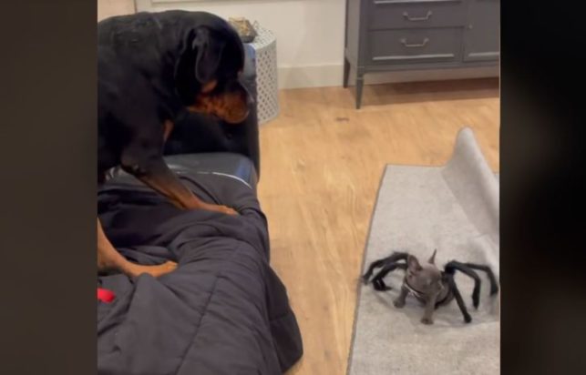 Η αντίδραση ενός Ροτβάιλερ με το όνομα Λίλα όταν βλέπει την μικρή «αδελφή» του ντυμένη αράχνη έχει κάνει τους χρήστες στο Tik Tok να ξεκαρδιστούν από τα γέλια.