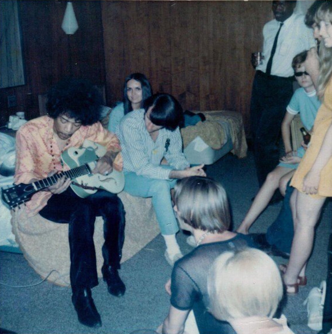 Ο Jimi Hendrix παίζοντας κιθάρα για τους Monkees, σε δωμάτιο ξενοδοχείου (1967).