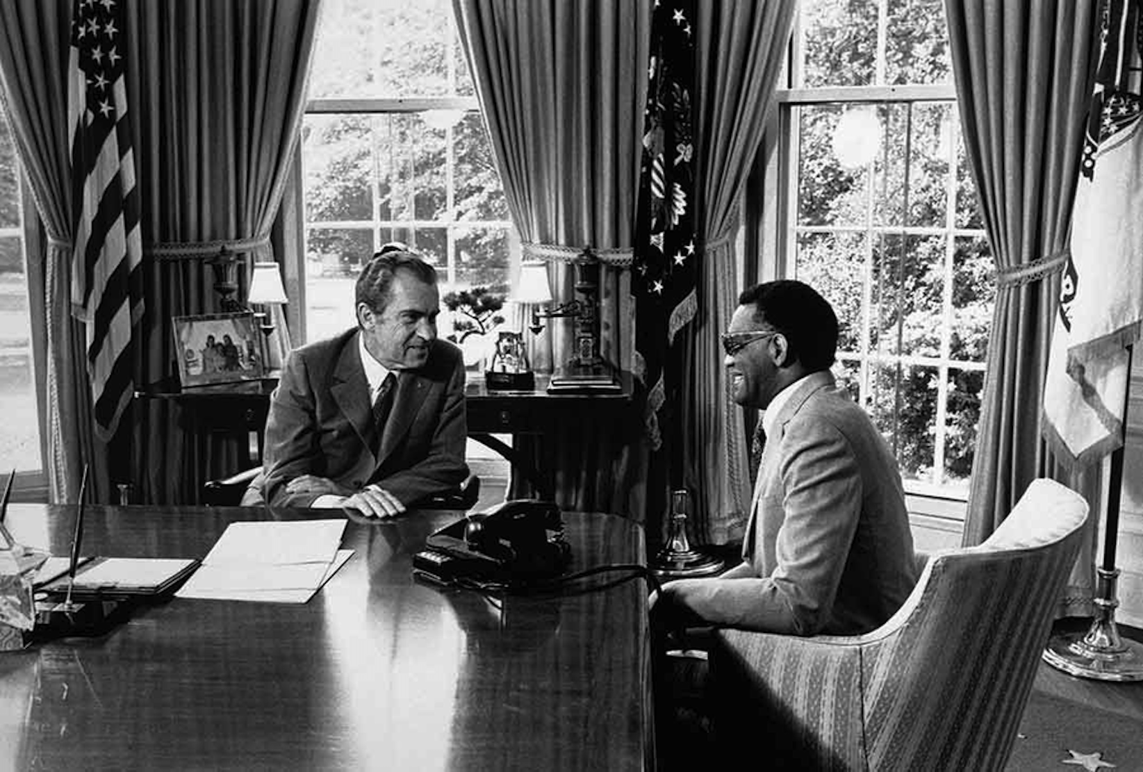 Ο Ray Charles με τον Richard Nixon κατά την επίσκεψή του στον Λευκό Οίκο (1972).