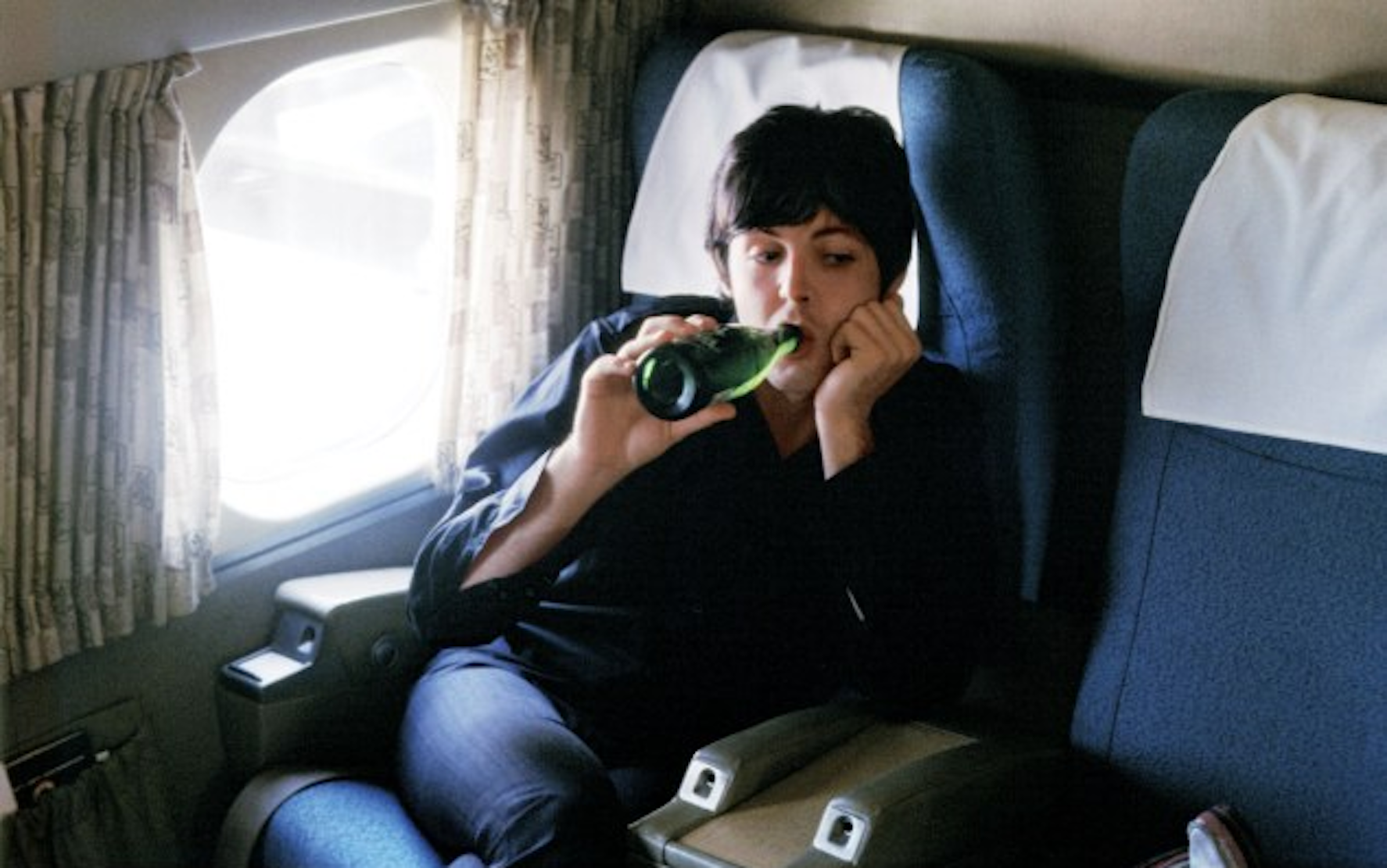 Ο Paul McCartney βαριέται κατά την πτήση σε περιοδεία με το συγκρότημά του.
