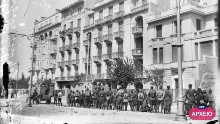 Στη φωτογραφία φαίνεται η λεωφόρος Βασιλίσσης Σοφίας στο ύψος του σημερινού ξενοδοχείου Χίλτον. Στο στιγμιότυπο που χρονολογείται το 1926 διακρίνονται τεθωρακισμένα οχήματα και στρατιώτες στον δρόμο.