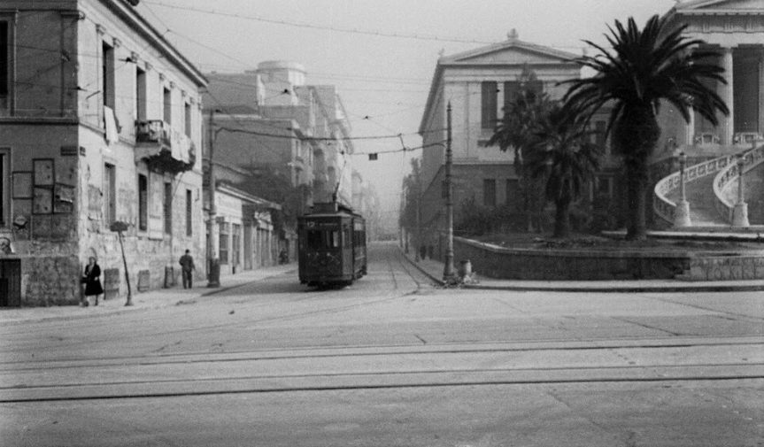 Στην φωτογραφία, που έχει τραβηχτεί από τον φωτογράφο Dmitri Kessel μπορείτε να δείτε την Οδό Ιπποκράτους στην συμβολή με την οδό Πανεπιστημίου. Η εικόνα έχει ληφθεί τον Δεκέμβριο του 1944 και μπορείτε να διακρίνετε το τραμ που κυκλοφορούσε εκείνη την εποχή στους κεντρικούς δρόμους της πρωτεύουσας. Η εικόνα ανήκει στο αρχείο Life Photo Collection.