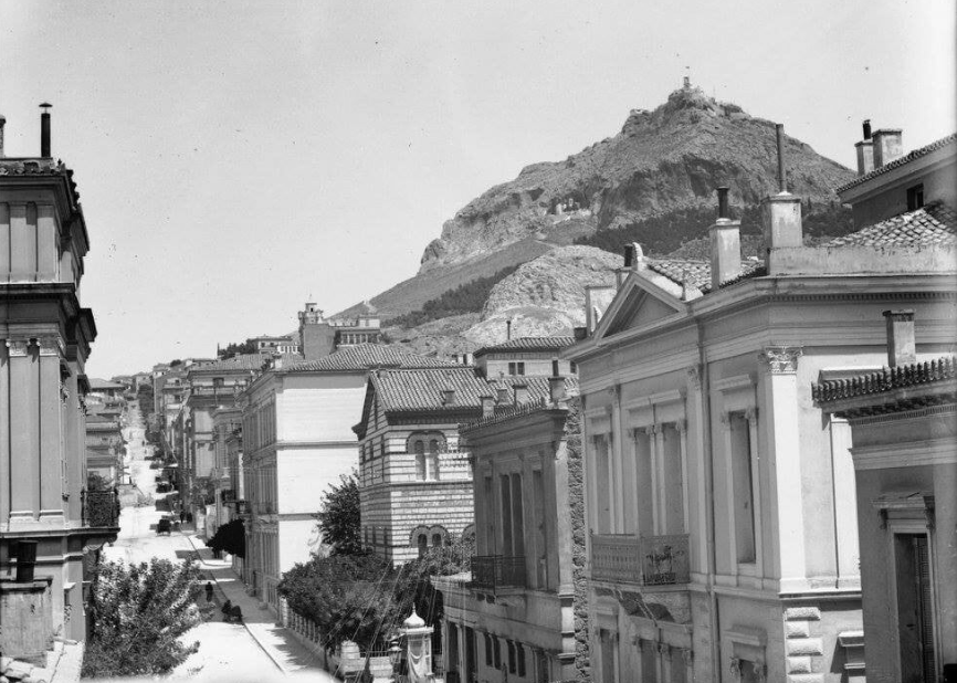 Στην φωτογραφία φαίνεται η οδός Εδουάρδου Λω. Η συνέχεια της είναι η οδός Σίνα και στα δεξιά φαίνεται το Οφθαλμιατρείο. Δίπλα είναι η Λεόντιος. Η φωτογραφία έχει τραβηχτεί είτε το 1910 είτε 1916 από τον Albert Winslow Barker και βρίσκεται στο αρχείο Bryn Mawr College.