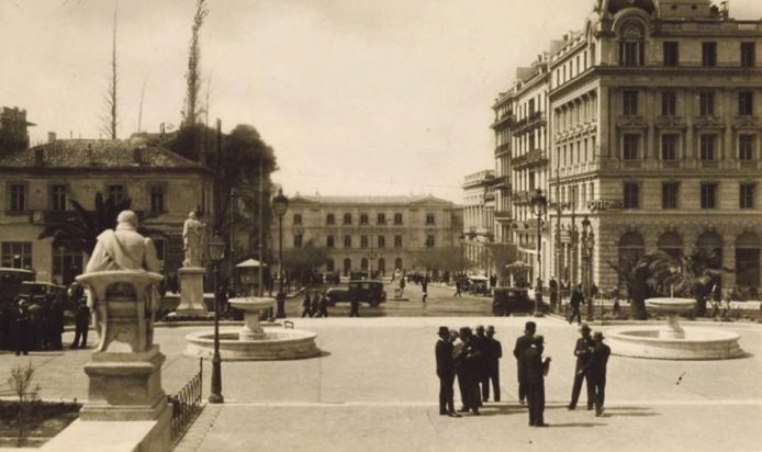 Στη φωτογραφία που έχει τραβηχτεί το διάστημα 1928 – 1932 βλέπετε την οδό Κοραή. Η εικόνα από το αρχείο του Situationist Kati, που δημοσίευσε η σελίδα «Η Αθήνα μέσα στον χρόνο», είναι τραβηγμένη από τα Προπύλαια του Πανεπιστημίου Αθηνών.
