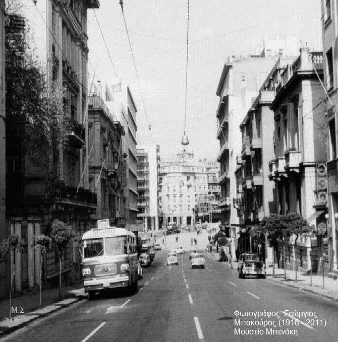 Στη φωτογραφία του φωτογράφου Γεώργιου Μπακούρου (Μουσείο Μπενάκη) που έχει τραβηχτεί το 1966 βλέπετε την οδό Φιλελλήνων στο Σύνταγμα.