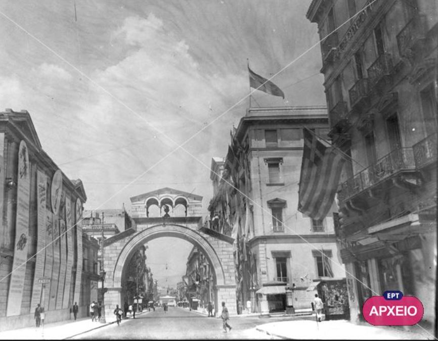 Στη φωτογραφία, η οποία ανήκει στο φωτογραφικό αρχείο της ΕΡΤ και αποτελεί μέρος της πλούσιας συλλογής «Πέτρου Πουλίδη», βλέπετε μία άποψη της οδού Σταδίου με την Καμάρα. Το στιγμιότυπο είναι του 1938.