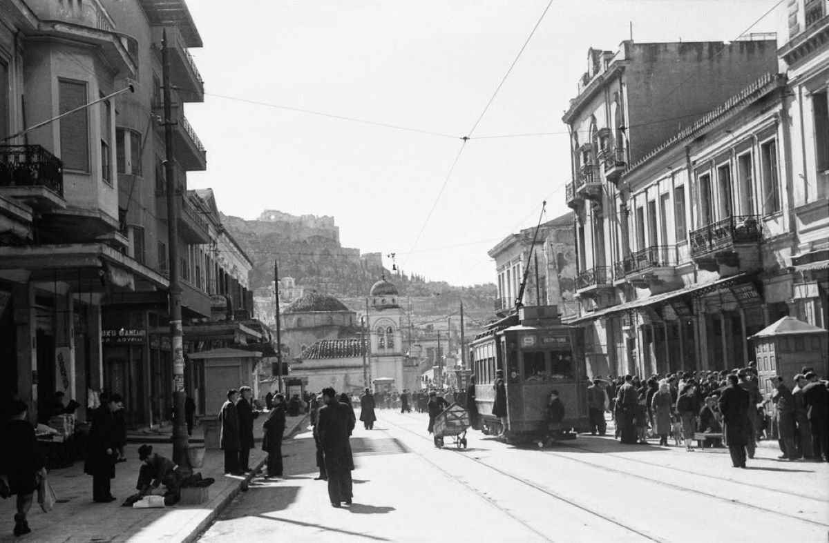 Στη φωτογραφία που έχει τραβηχτεί την δεκαετία του 1940 βλέπετε την οδό Αθηνάς.