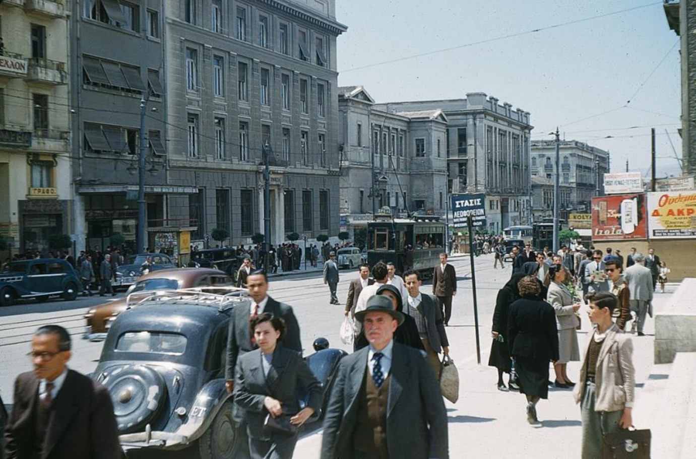 Στη φωτογραφία (Φωτογράφος: Benedict A. Cacciaζ) που έχει τραβηχτεί το 1951 βλέπετε την οδό Πανεπιστημίου.