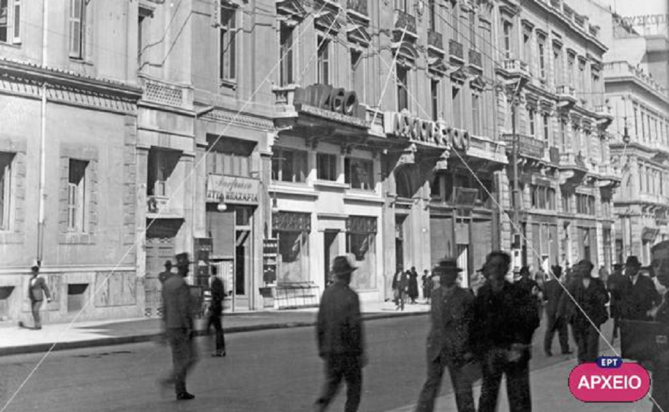 Στη φωτογραφία, η οποία ανήκει στο φωτογραφικό αρχείο της ΕΡΤ και αποτελεί μέρος της πλούσιας συλλογής «Πέτρου Πουλίδη», βλέπετε μία άποψη της οδός Σταδίου. Το στιγμιότυπο χρονολογείται μεταξύ 1923 και 1939.
