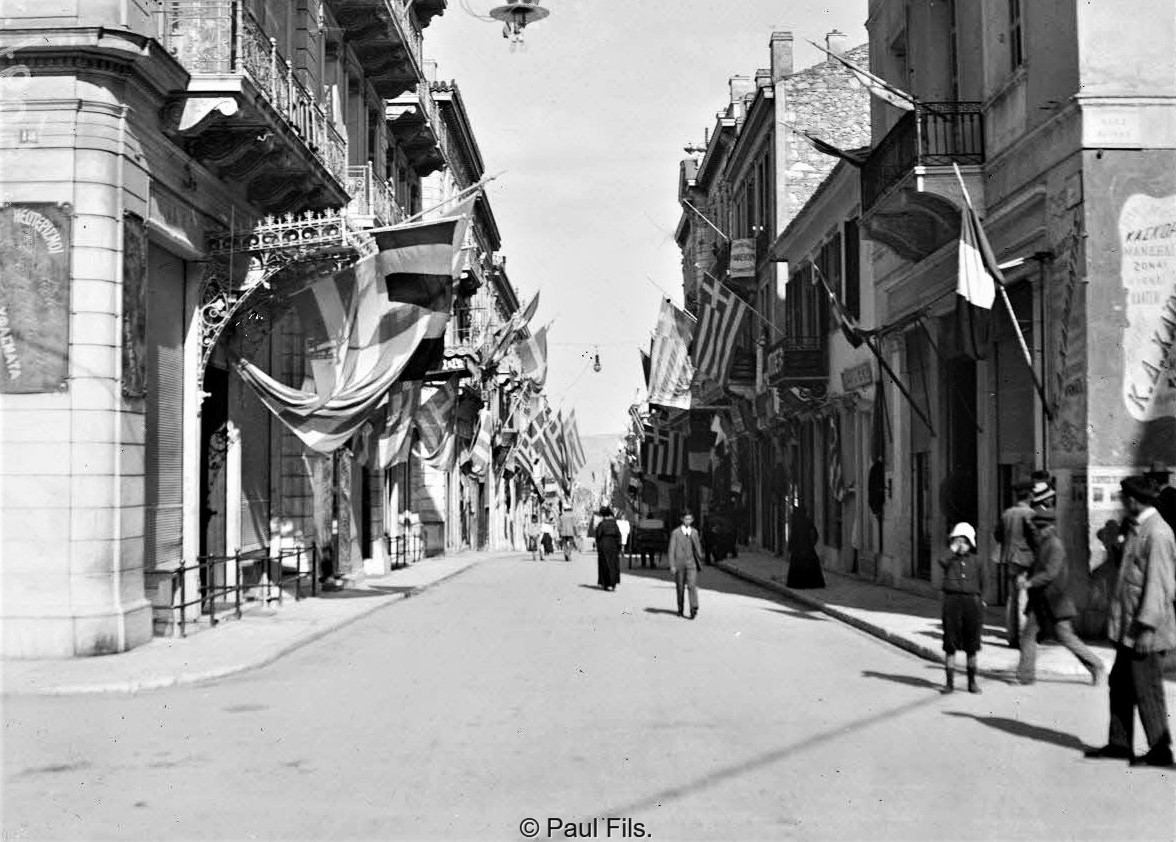 Στη φωτογραφία βλέπετε την οδό Ερμού στην συμβολή με την οδό Βουλής. Η εικόνα έχει τραβηχτεί το 1917 και ανήκει στον φωτογράφο Paul Fils.