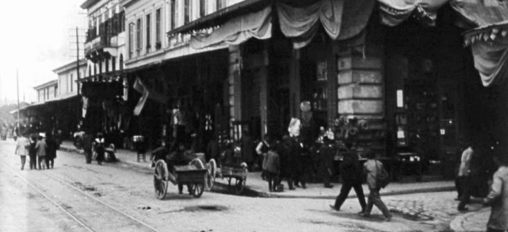 Στη φωτογραφία που έχει τραβηχτεί τον Απρίλιο του 1902 βλέπετε καταστήματα στην προκυμαία του Πειραιά. Η εικόνα έχει ληφθεί από τον Jean Binot.