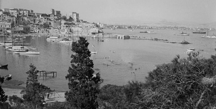 Στη φωτογραφία που έχει τραβηχτεί το 1931 από τον φωτογράφο Μoritz Blumenthal βλέπεις το Μικρολίμανο. Στο στιγμιότυπο διακρίνονται σπίτια αλλά και πολυτελή σκάφη εκείνης της εποχής.