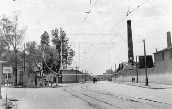 Στη φωτογραφία που έχει τραβηχτεί το 1950 βλέπετε το Γκάζι και την οδό Πειραιώς με τις γραμμές του τραμ.