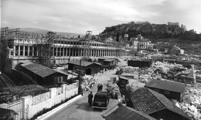 Στη φωτογραφία που έχει τραβηχτεί το 1955 βλέπετε το Μοναστηράκι και τη Στοά του Αττάλου.