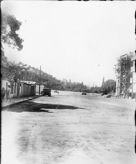 Στην φωτογραφία η οποία ανήκει στο πλούσιο αρχείο της ΕΡΤ και αποτελεί μέρος της συλλογής «Πέτρου Πουλίδη», φαίνεται το Παγκράτι και συγκεκριμένα μία άποψη της περιοχής μπροστά από το Καλλιμάρμαρο Στάδιο. Στα δεξιά διακρίνεται νεοαναγειρόμενη πολυκατοικία και στο βάθος τραμ.