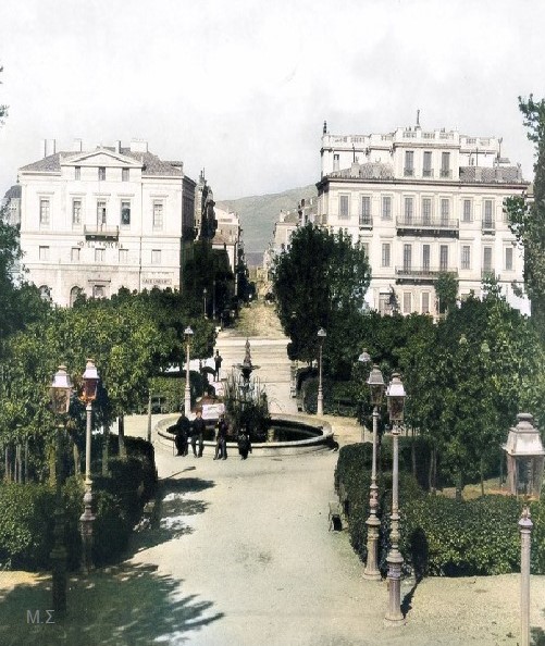 Στη φωτογραφία (Αφοί Ρωμαΐδη) που έχει τραβηχτεί το 1895 βλέπετε την πλατεία Συντάγματος και στο βάθος την οδό Ερμού.