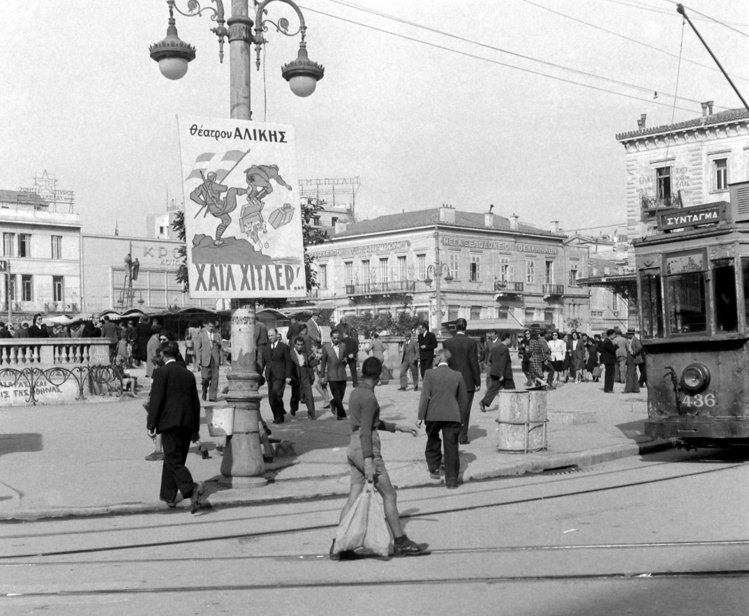 Στη φωτογραφία (Πηγή: Θεόδωρος Μεταλληνός, Φωτογράφος: Dmitri Kessel) που έχει τραβηχτεί το 1944 βλέπετε την πλατεία Ομονοίας.
