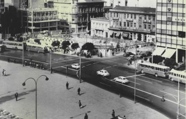Στη φωτογραφία που έχει τραβηχτεί την δεκαετία του 1960 βλέπετε την πλατεία Συντάγματος.